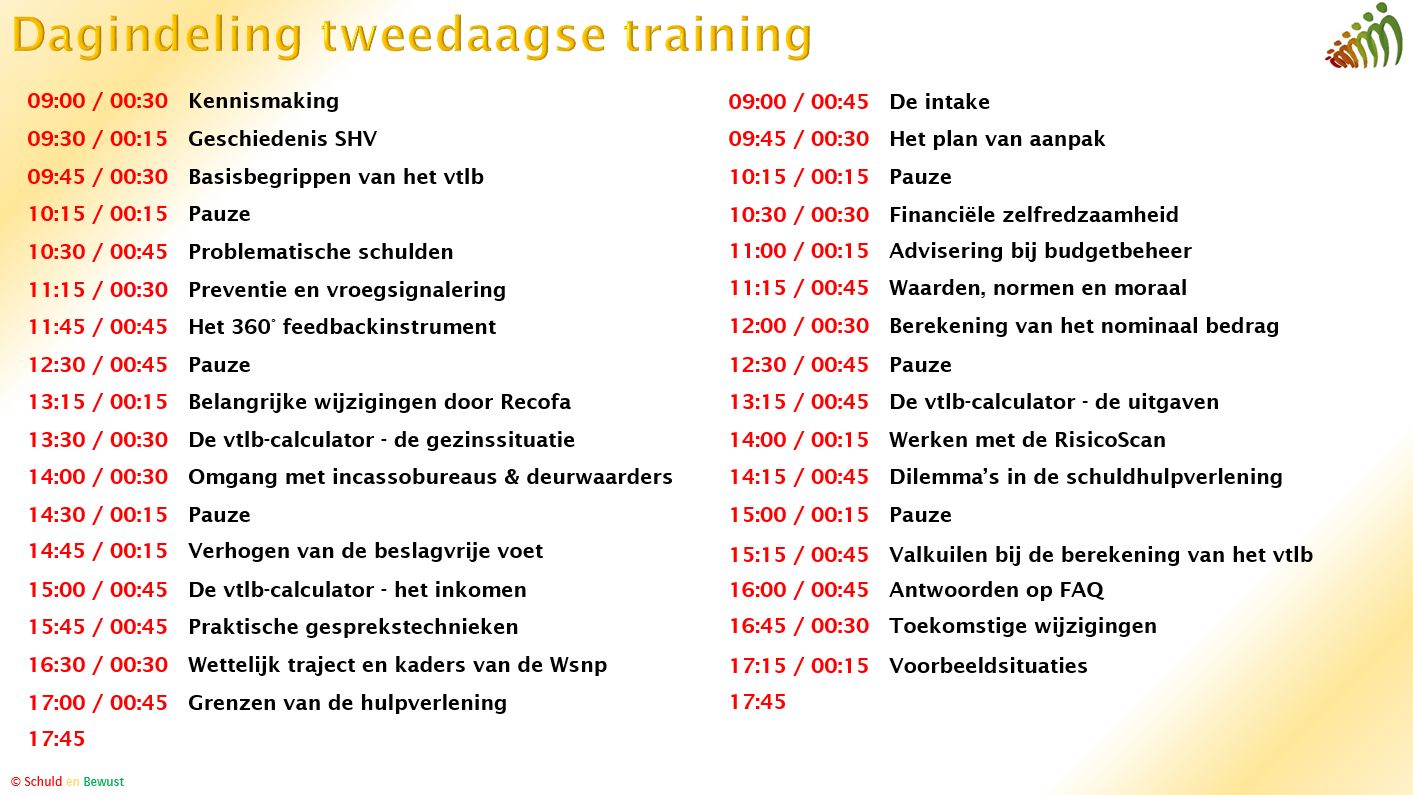 Dagindeling training vrij te laten bedrag - 2 dagen